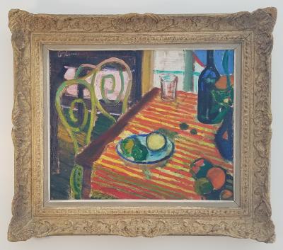 English Biography: Roger Limouse was born in Algeria, and after a brief career in civic administration in Tunis in 1919, he studied art under Jean Paul Laurens at the Academie Julian* in Paris. It was at the Academie Julian, that he met and shared a studio with the painter Jules Cavaillès. After completing his tuition, Limouse embarked on a period of travel. He returned to North Africa during the 1930s and then went to France, where he joined Cavaillès, Roland Oudot, Maurice Brianchon, André Planson, Christian Caillard, Raymond Legeuelt, and Kostia Terechkovitch to form the Painters of Poetic Reality, la réalité poétique. This group was really an affiliation of friends and kindred spirits rather than a movement with a manifesto and he exhibited several works with them and took part in a major retrospective exhibition in 1956. He also exhibited at various Salons including des Artistes Francais*, des Independants, d’Automne* and des Tuileries. His work was clearly influenced by the Fauves and to a lesser extent the Cubists, but he was also revered as a painter of interiors. He was greatly influenced by Edouard Vuillard and Pierre Bonnard – one of the greatest painters of such scenes – who spoke of Limouse’s ‘heart, sensuality and intimacy.’ Because of his love of vibrant colour, Roger Limouse has been called the last of the Fauves*. The vintners Nicolas in 1958 exclusively used paintings from Limouse to illustrate their back catalogue of exceptional fine wines. The Museum of Modern Art, Paris has three paintings by Limouse in its permanent collection. Source: Ebury Galleries, London Works